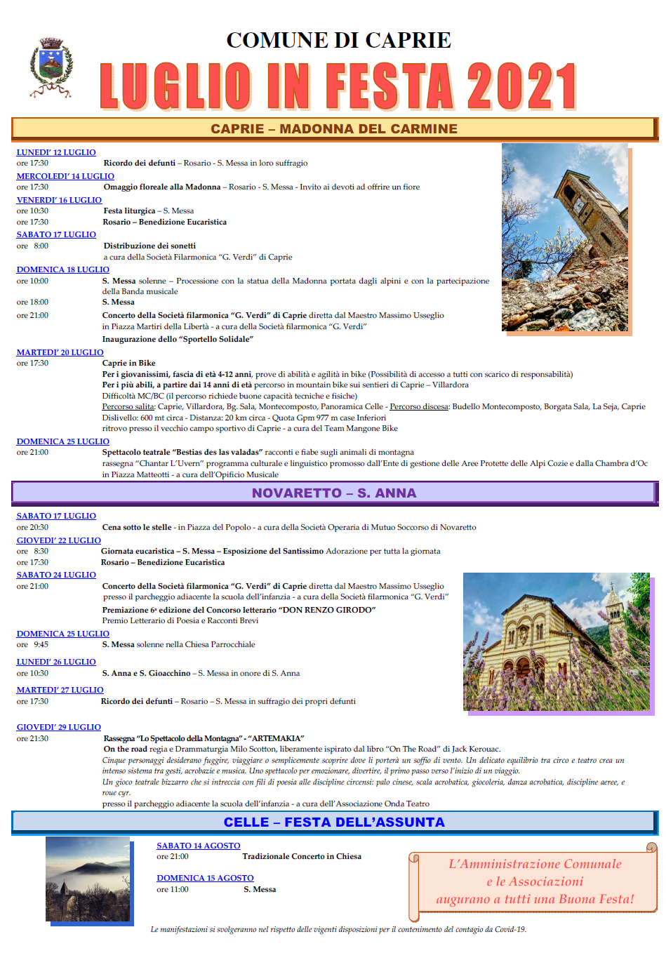 In allegato il manifesto con gli eventi della Festa Patronale 2021