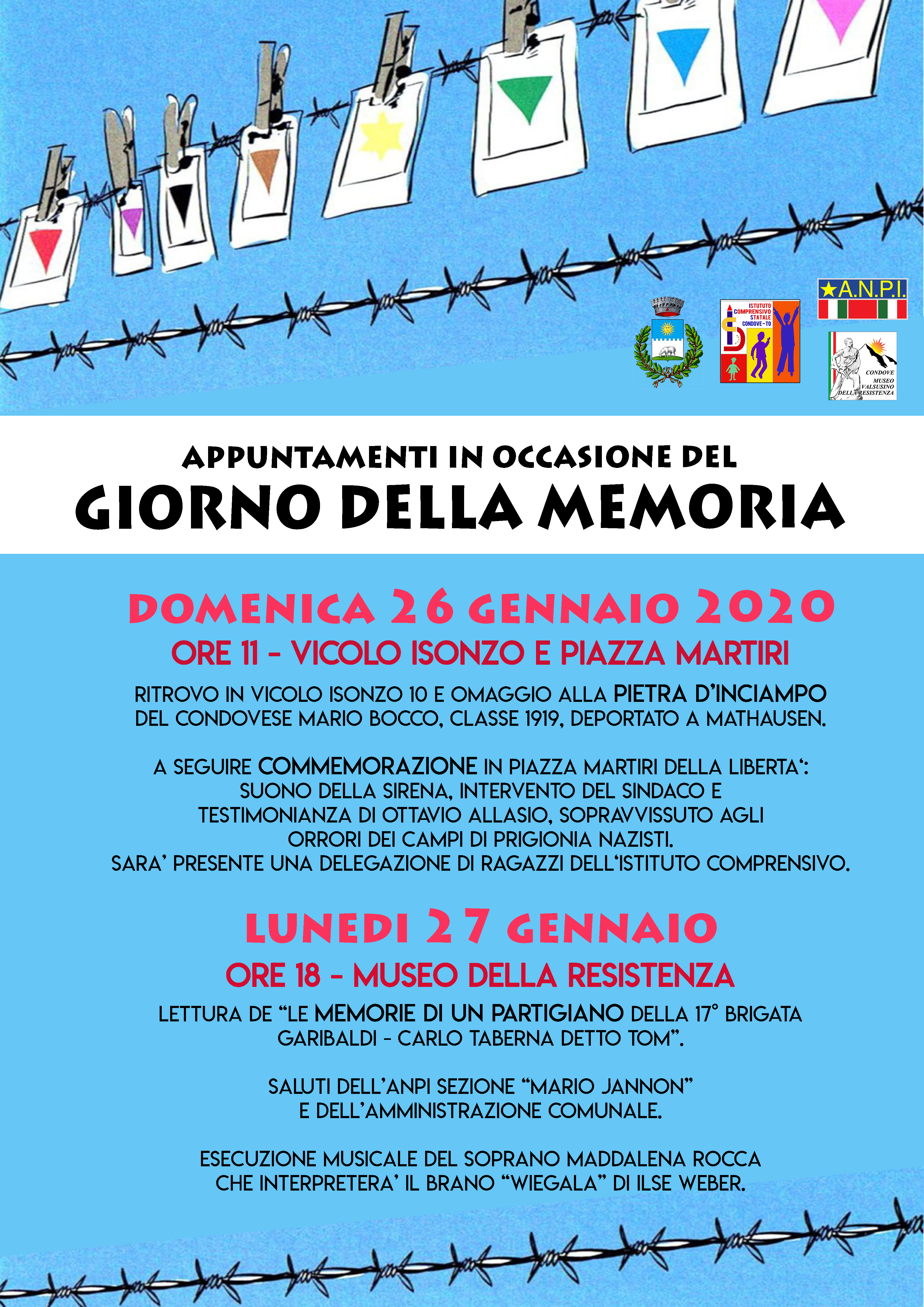 Il Comune di Condove ha organizzato per tale ricorrenza gli appuntamenti di cui alla locandina allegata