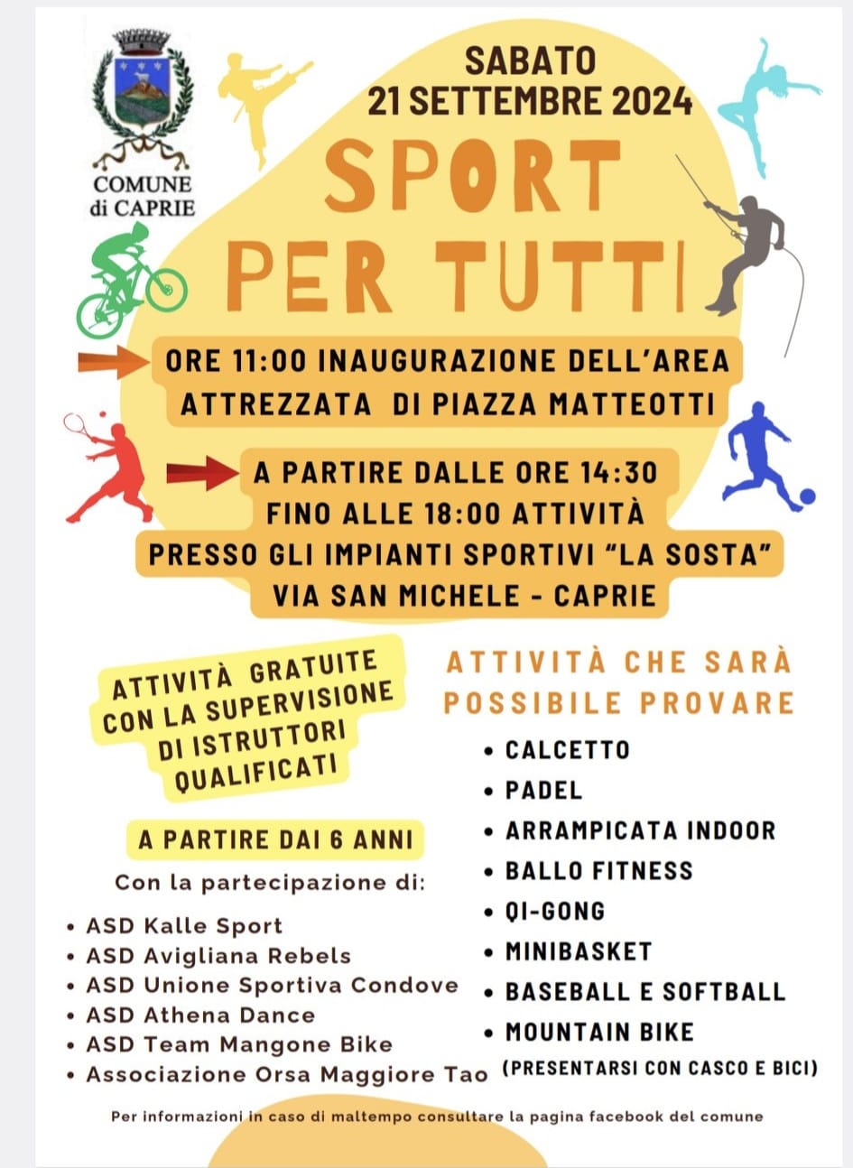 dalle ore 14:30 alle ore 18:00 attività presso gli impianti sportivi Via Sacra San Michele
