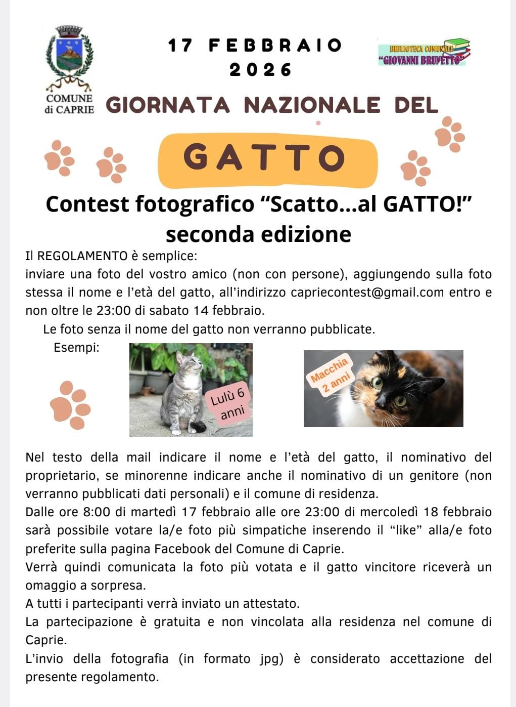 Di seguito il regolamento per partecipare al contest fotografico "Scatto al Gatto"