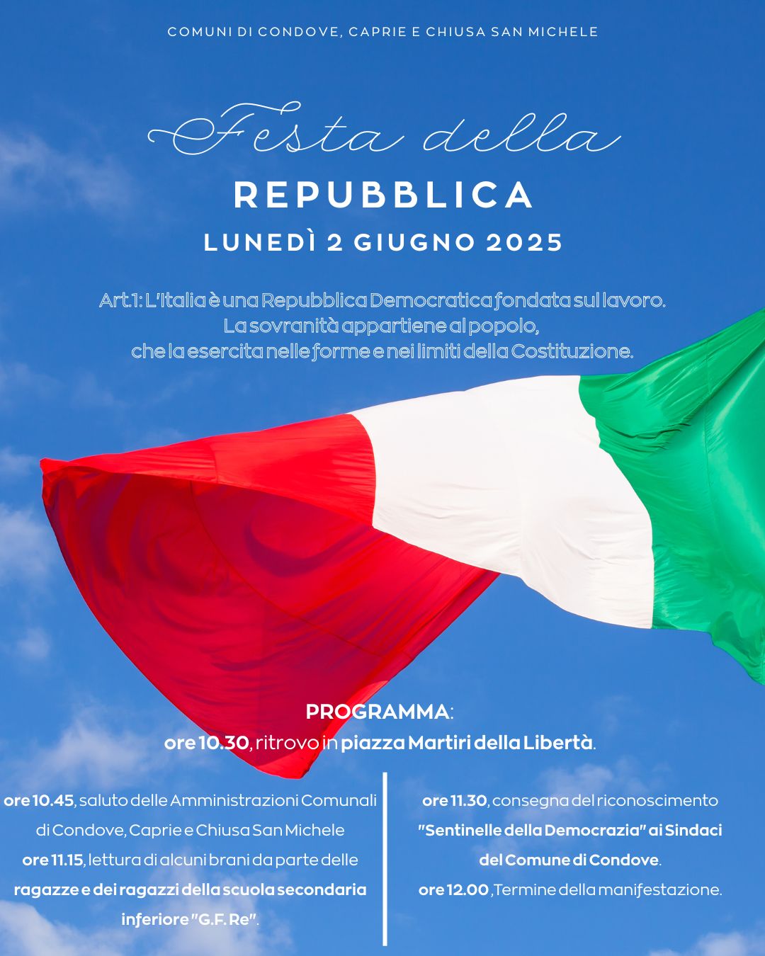 In allegato il programma della Celebrazione del 2 giugno - Festa della Repubblica