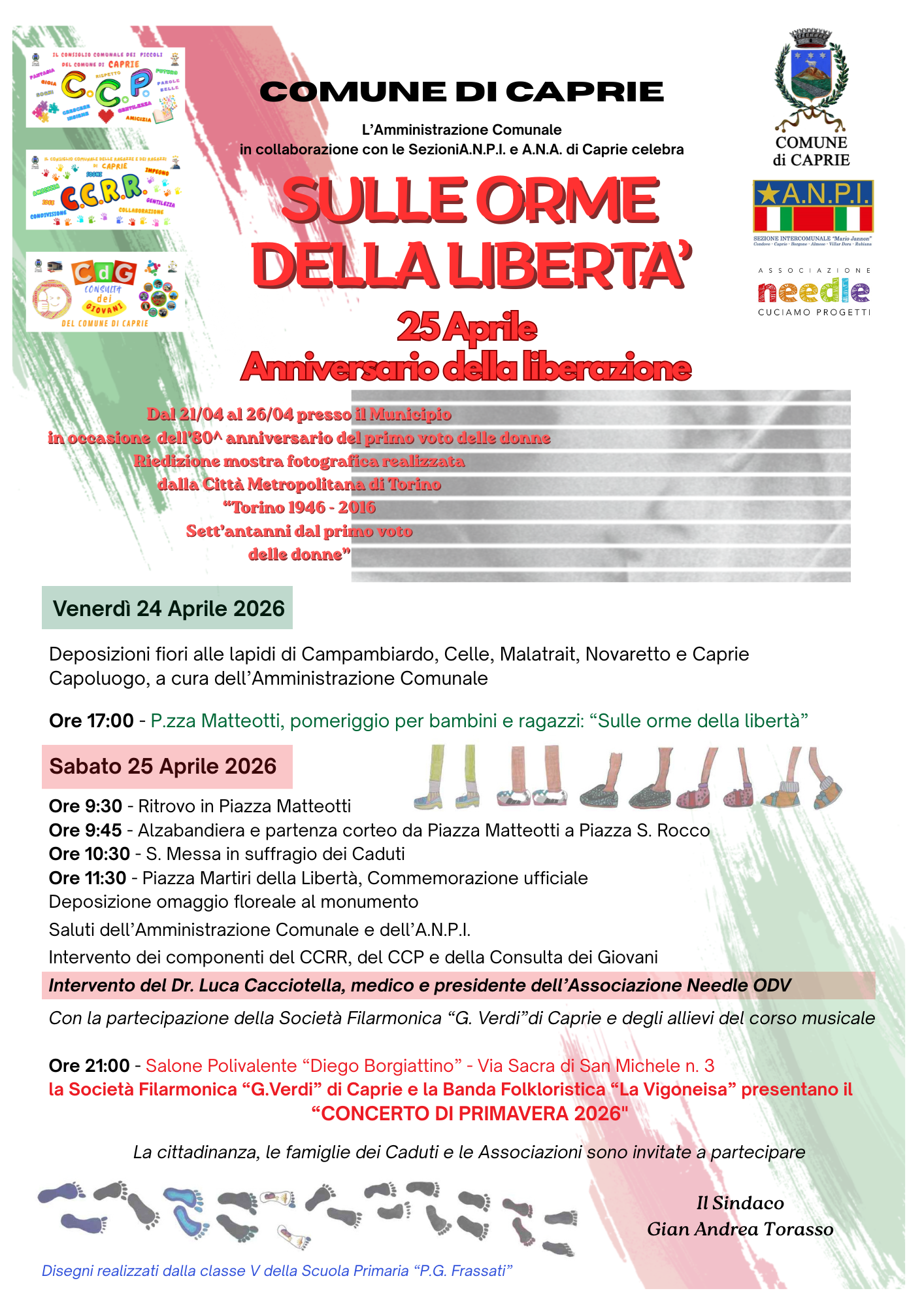 Sabato 25.04.2026 si svolgerà la manifestazione celebrativa dell'anniversario della Liberazione secondo il programma allegato.