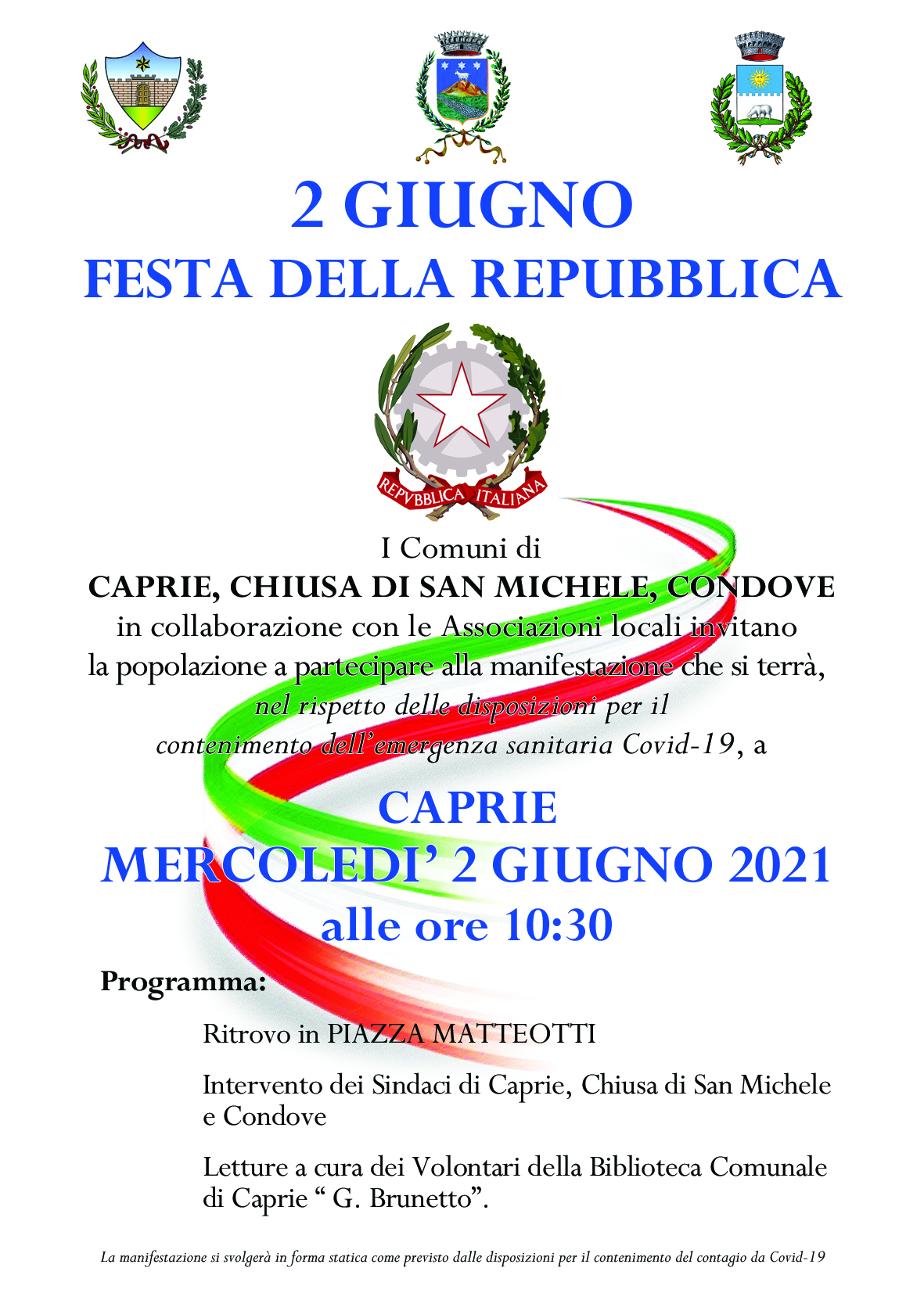 In allegato il programma della Celebrazione del 2 giugno - Festa della Repubblica