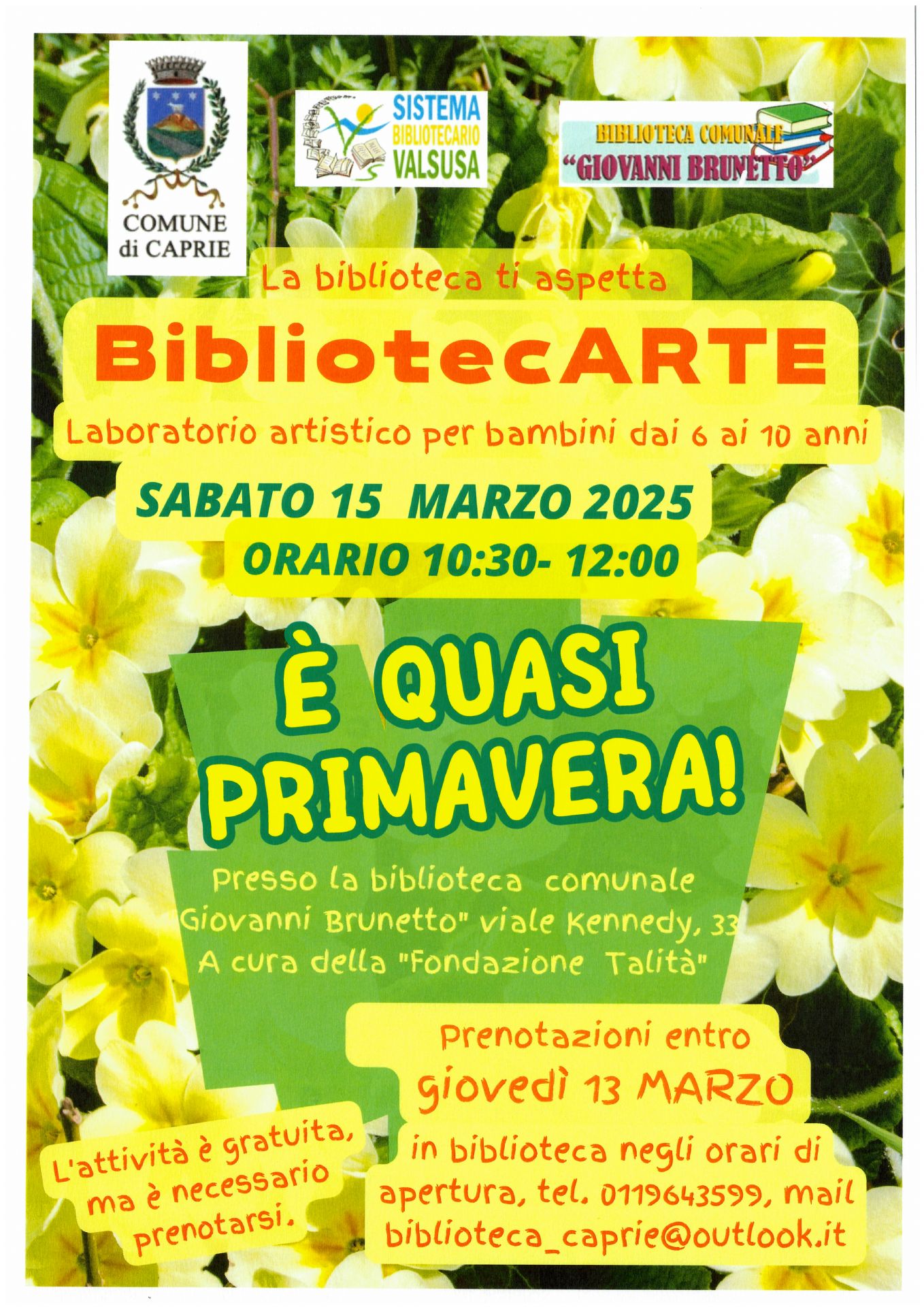Prenotazioni entro giovedì 13 marzo come indicato nella locandina