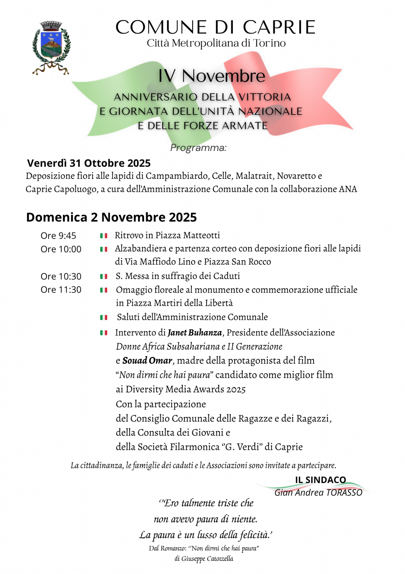 Celebrazione della ricorrenza del IV NOVEMBRE
