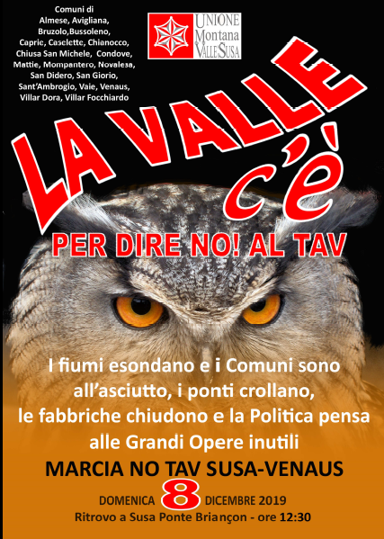 DOMENICA 08.12.2019 si svolgerà la MARCIA NO TAV SUSA - VENAUS con ritrovo alle ore 12:30 a Susa presso il Ponte Briancon