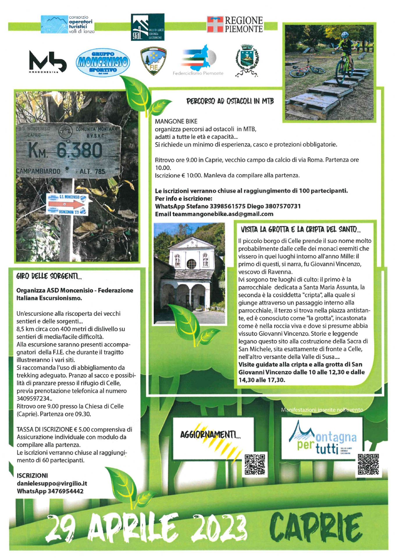 In allegato il programma della giornata dedicata alla montagna organizzata dalle Associazioni A.S.D. Moncenisio e Mangone Bike con il patrocinio del Comune di Caprie
