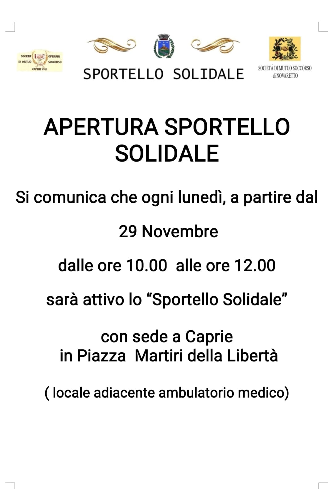 Si comunica che a partire dal 29.11.2021 ogni lunedì sarà attivo lo SPORTELLO SOLIDALE