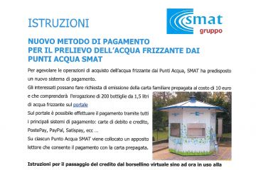 SMAT - nuovo metodo di pagamento per il prelievo dell'acqua frizzante dai Punti Acqua SMAT