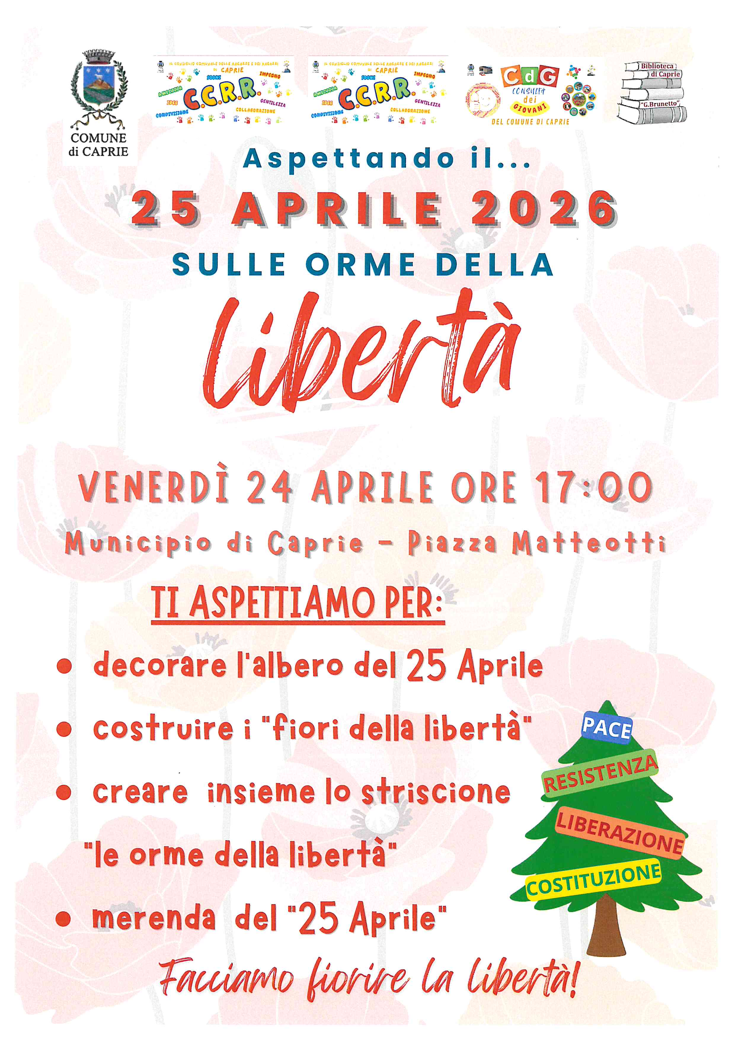 Sabato 25.04.2026 si svolgerà la manifestazione celebrativa dell'anniversario della Liberazione secondo il programma allegato.
